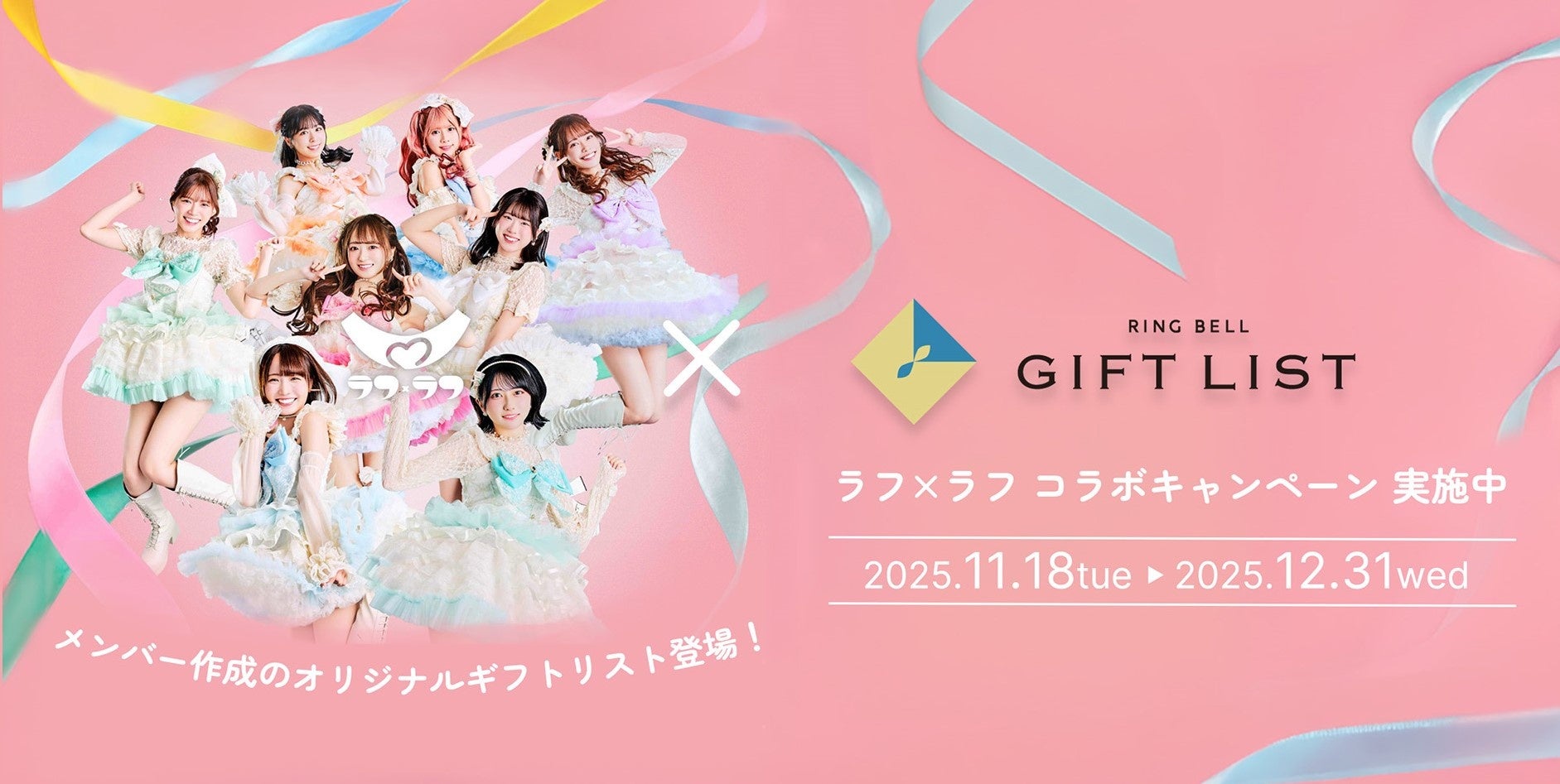 リンベル株式会社(以下リンベル、本社:東京都中央区、代表取締役会長CEO:東海林 秀典)は、11月18日(火)~12月31日(水)の期間限定で、デジタルギフトサービス「GIFT LIST(ギフトリスト)」とアイドルグループ『ラフ×ラフ』とのコラボキャンペーンを開催しています。