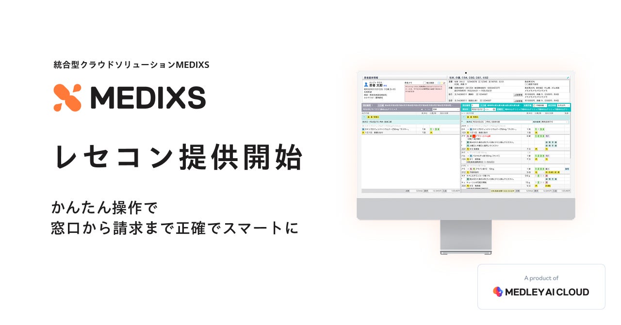 株式会社メドレー(本社:東京都港区、代表取締役社長:瀧口 浩平、以下メドレー)は、薬歴を中核として調剤薬局向けに提供している統合型クラウドソリューション「MEDIXS(メディクス)」において、クラウド型レセコンとなる「MEDIXS レセコン」の提供を開始します。