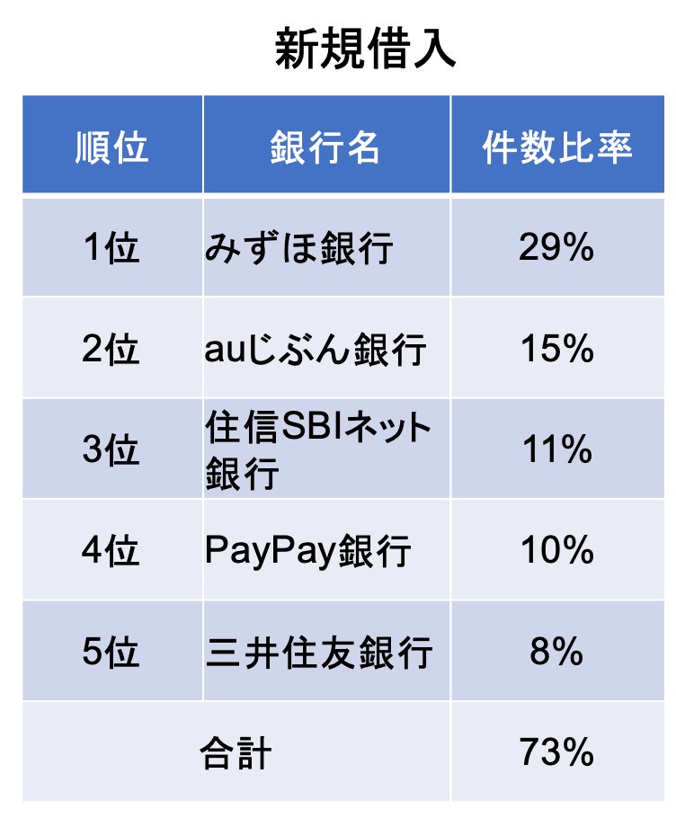 みずほ銀行に申し込んだユーザーが非常に多い結果となりました。メガバンクの安心感に加えて、0.375%という低金利がユーザーをひきつけたと考えられます。2位以下はネット系銀行の強さが目立ちます。