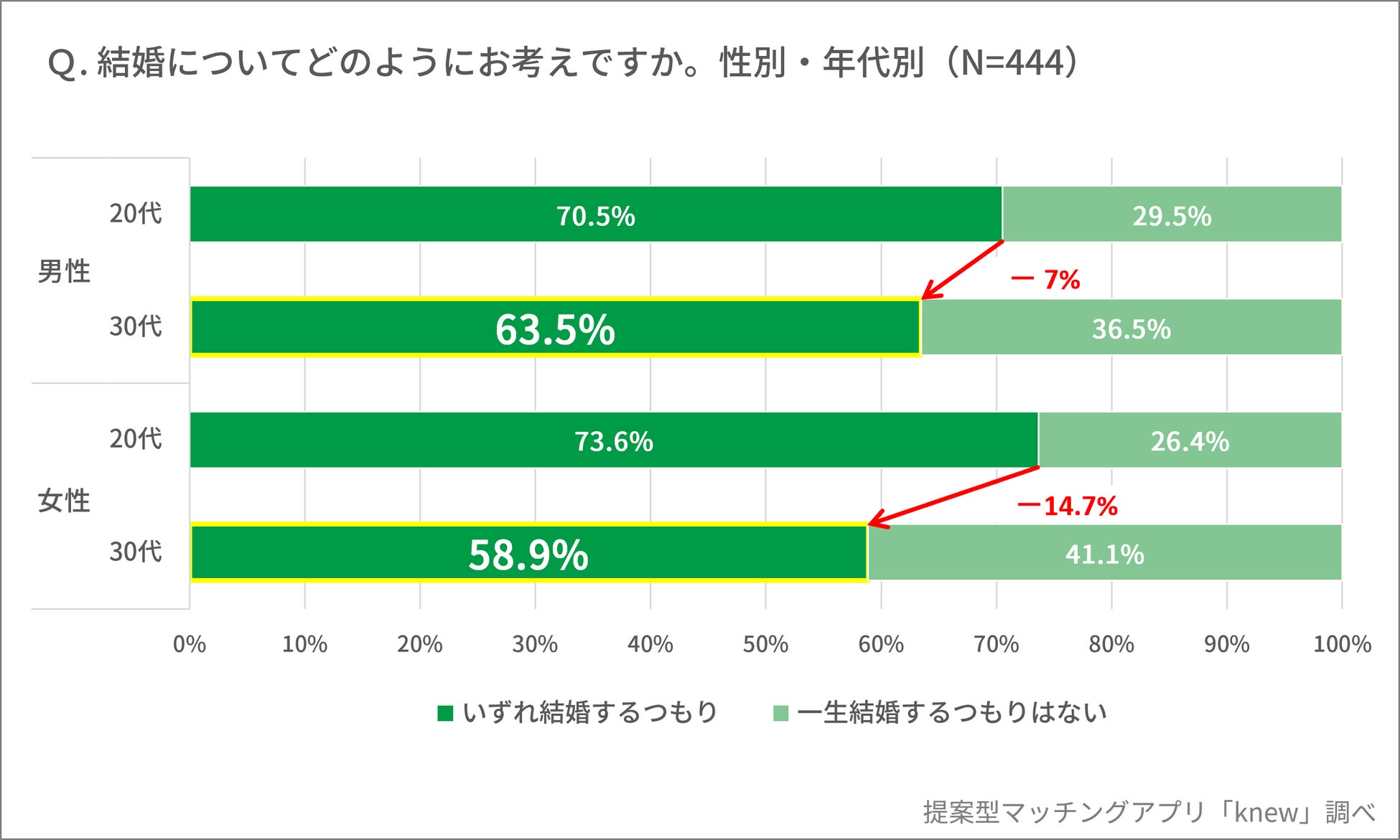 今回は、20・30代の独身男女444人を対象にした結婚観に関するアンケート調査を行いました。
