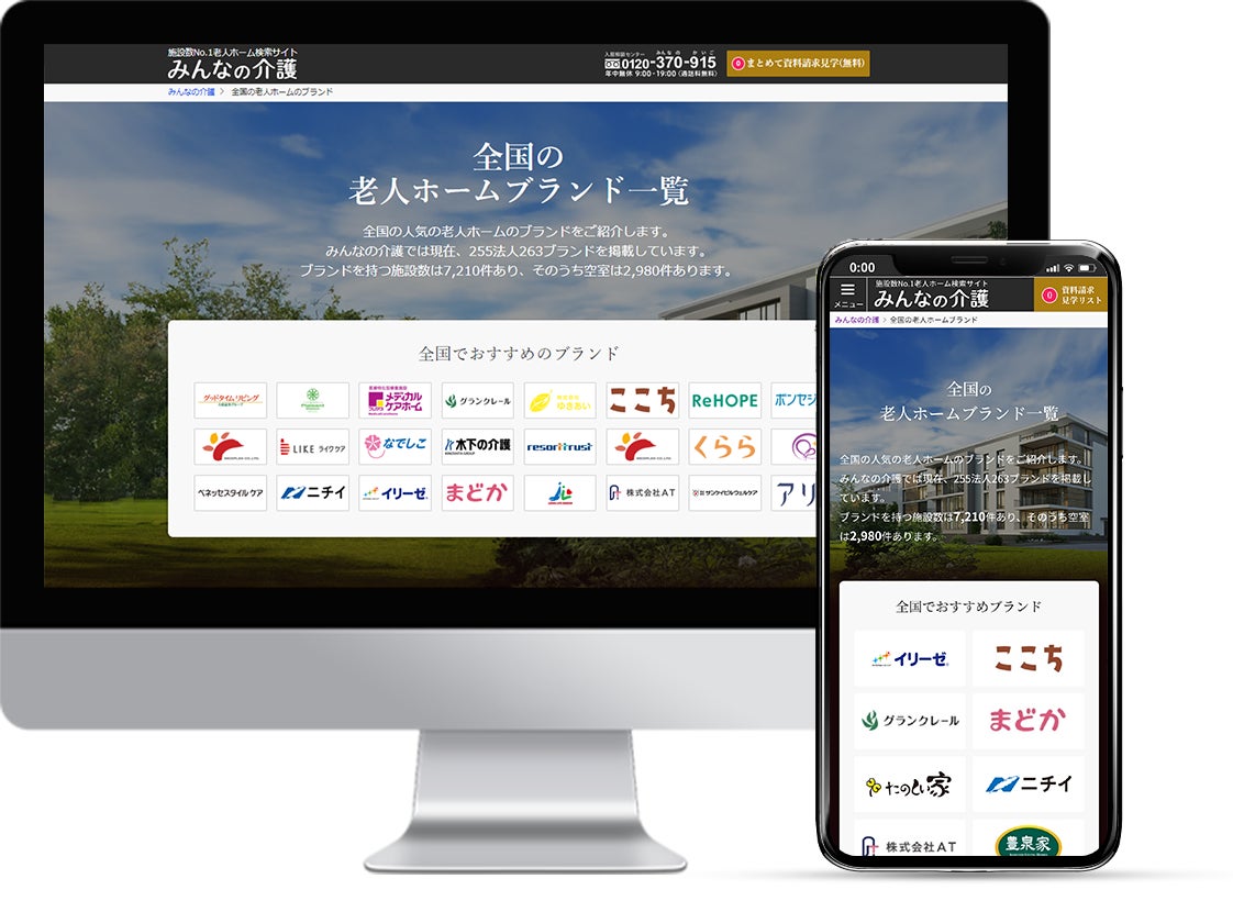 掲載施設数No.1(※)の⽼⼈ホーム検索サイト「みんなの介護」を運営する株式会社クーリエ(本社:東京都渋⾕区、代表取締役 安⽥ ⼤作)は、2024年8月1日より、老人ホームのブランドごとに比較ができる「ブランドページ」を新たに開設いたしました。「みんなの介護」に掲載している全国30以上の老人ホームブランドが一堂に会し、今後も新たなブランドの追加を予定しております。これにより、入居を検討される皆様に対し情報の充実を図り、施設側も成約率の向上と他施設との差別化を実現することを目指します。