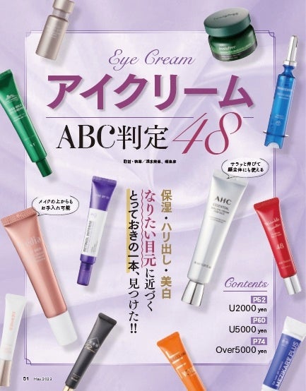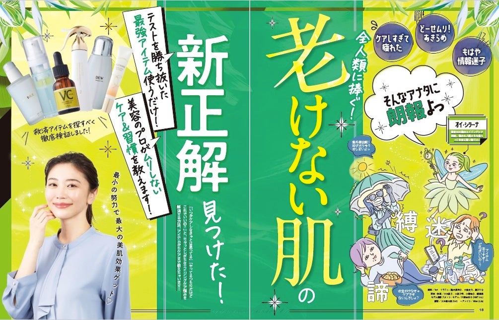 5月号の総力特集は、「老けない肌の新正解見つけた!」。お金も手間も最小限で叶うシワケアコスメや、シミを徹底的に防御する万能ビタミンC美容液、肌にしっかりとうるおいを与えてくれる高保湿化粧水など、迫りくるエイジング悩みを解決してくれるコスメ&テクを大公開しています。そのほかにも、日焼け・汗崩れ・ 肌アラから救う「美肌UV下地のベスト」や、乾燥小ジワを撃退してくれる「アイクリームABC判定」など、キレイを叶える情報盛りだくさんでお届け!