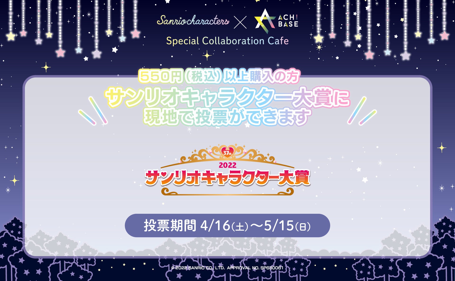 2022年4月16日(土)~10月31日(月)の期間 営業。 4月16日(土)~5月15日(日)の期間、カフェ店頭で2022年サンリオキャラクター大賞 人気投票も実施