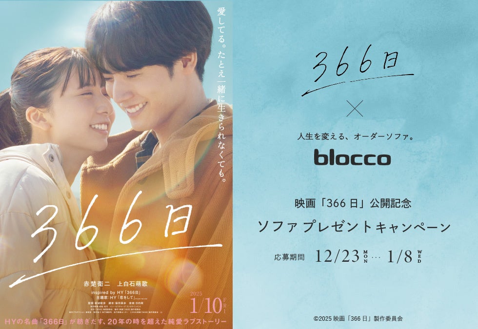 新築・リフォーム住宅をはじめインテリアショップ・飲食店計10店舗を運営する(株)ジョンソンホームズ(本社:北海道札幌市西区、代表:山地 章夫)は、オーダーソファ専門店blocco(ブロッコ)と、2025年1月10日(金)全国ロードショー『366日』の公開記念キャンペーンを開催します。【Webページ】https://www.bloccoshop.jp/news/366-campaign/