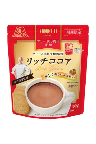 この度、100周年を迎えるにあたり、辻口シェフに監修のもと、特別な「マリー」として、「マリー<発酵バター香るメープルキャラメル」を開発しました。発酵バターの香りがトップにありながら、メープルキャラメルのやさしい甘さが感じられる味わいです。また、「リッチココア<マリーと味わう贅沢時間>」は優しく香るベルガモットの風味のココアで、「マリー」との相性がピッタリです。