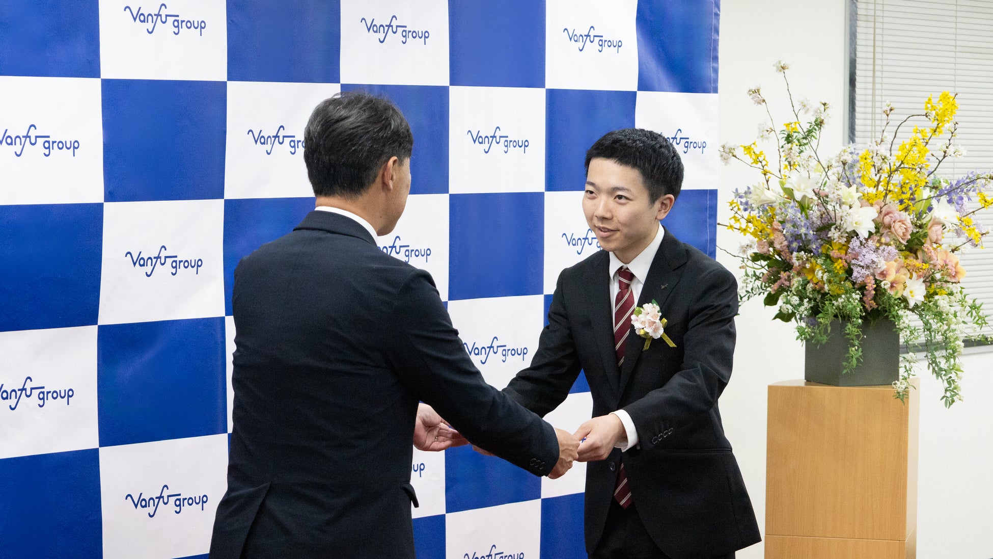 代表取締役社長の須藤は、「バンフーは『感謝・思いやり・謙虚さ』を大切にしている会社なので、そこを大事にしながら色々な経験をして、バンフーの社員として育っていってほしい」と新入社員に向けて激励の言葉を贈り、一人ひとりに辞令が交付されました。