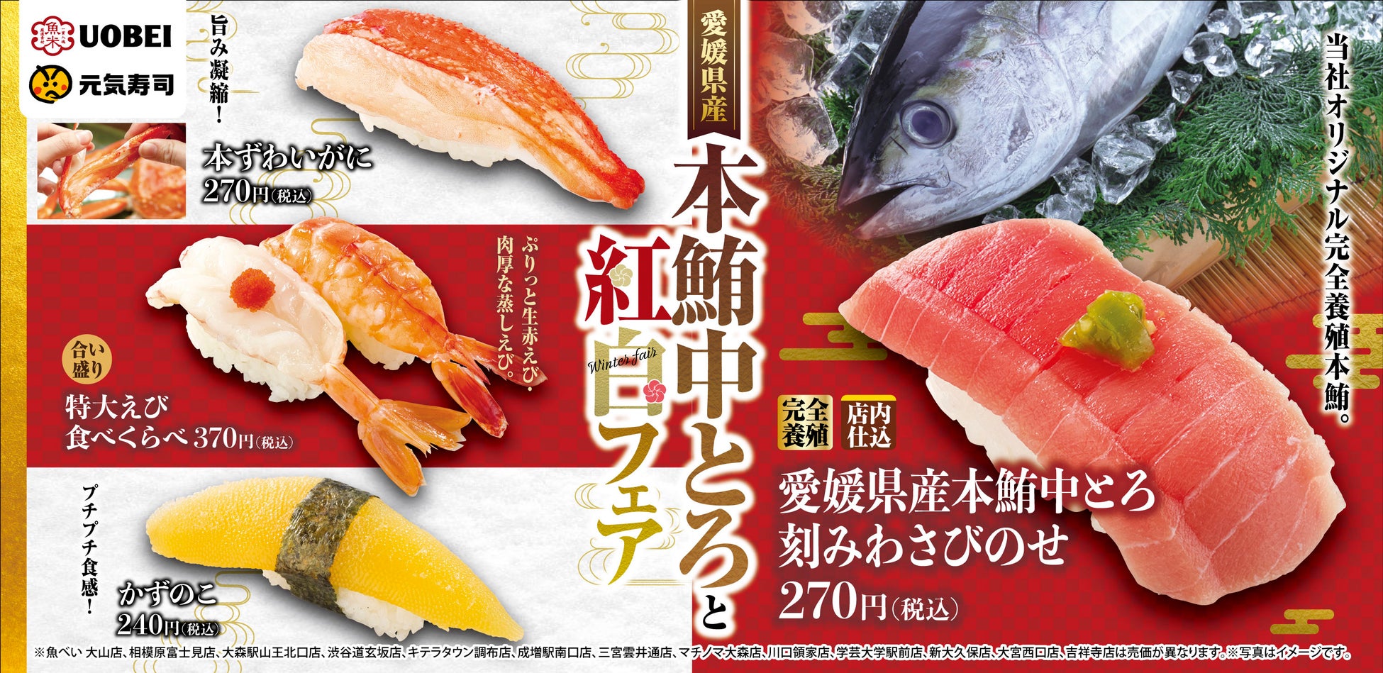 年末年始は、ぜひ魚べい・元気寿司の厳選ネタをお楽しみください。