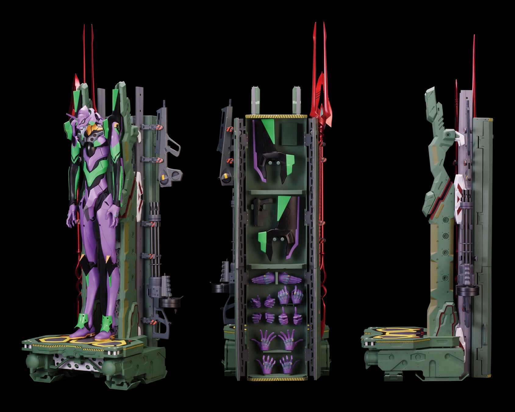 本シリーズではディテールに至るまでこだわった専用台座の組み立ても楽しめる。『新劇場版』の射出ハブターミナルをイメージしたデザインで、ビッグスケールのエヴァ初号機の肩・腕部分をホールドし、美しく機能的にディスプレイすることが可能。