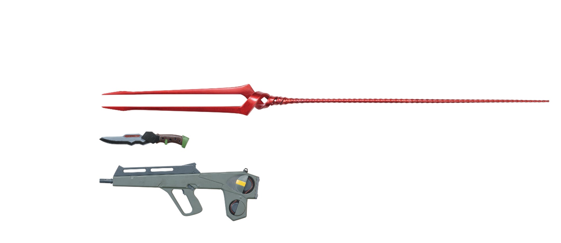 エヴァ初号機と同スケールのプログレッシブナイフ、パレットライフルなどのハンドウエポン4種が付属。さらに、『新劇場版』に登場したキーアイテム、ロンギヌスの槍とカシウスの槍も細部にこだわった仕様で再現。それぞれの武器を初号機に持たせてさまざまなポージングを楽しむことができる。