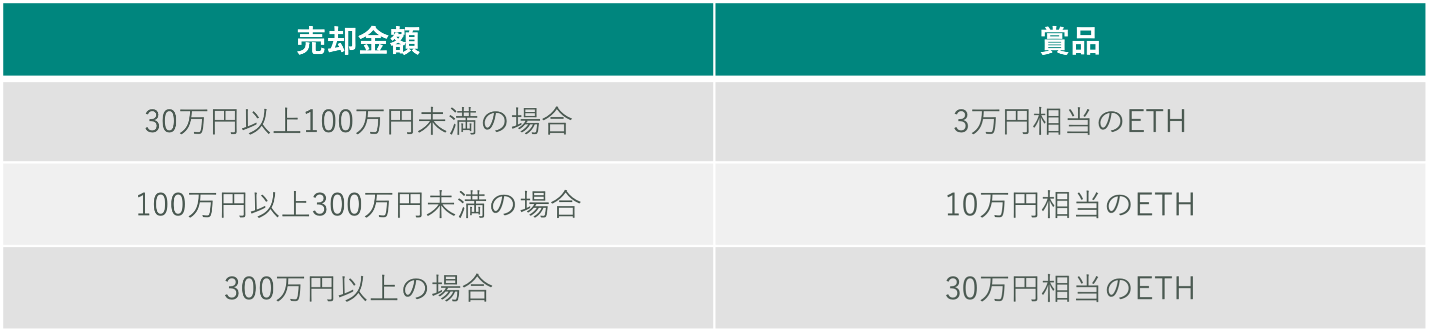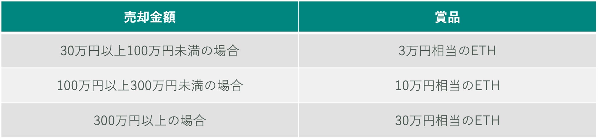 売却金額に応じて以下の通り賞品をプレゼントいたします。