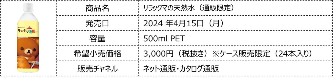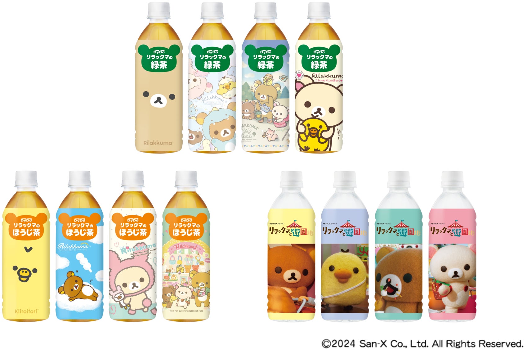 「リラックマの緑茶」「リラックマのほうじ茶」は、ふんわりやわらかタッチイラストと、2024年で20周年をむかえる人気キャラクター「コリラックマ」を意識したデザインで、これまで以上に親近感を覚えるリラックマの癒しを演出しています。「リラックマの天然水(通販限定)」は、ストップモーションアニメ「リラックマと遊園地」のシーンを活用。4種類のリラックマの新たな魅力や世界観を感じるデザインで、その時の気分によって好きなキャラクター・シーンのデザインをお楽しみいただけます。