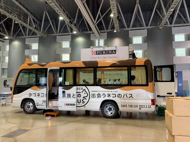 会場外には、ネスレ ピュリナ ペットケアと、ネコリパブリックが共同運営している「ネコのバス」が登場。保護猫譲渡会を開催します。また、会場内にはネコのバスに乗車するネコ以外でも、里親募集している猫たちのポスターが掲示される。