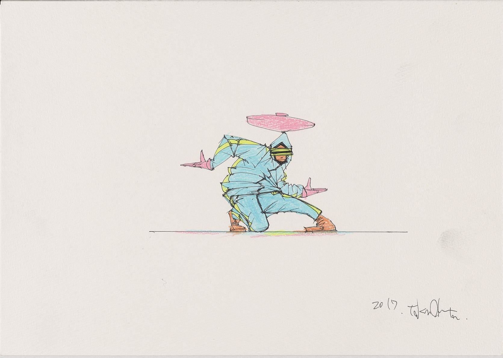 自らもb-boyであり、木彫による人体と衣服の関係性や、b-boyと彫刻を端緒に生まれる空間、動き、重力を追求、彫刻以外のメディアでも精力的に表現し続けている。