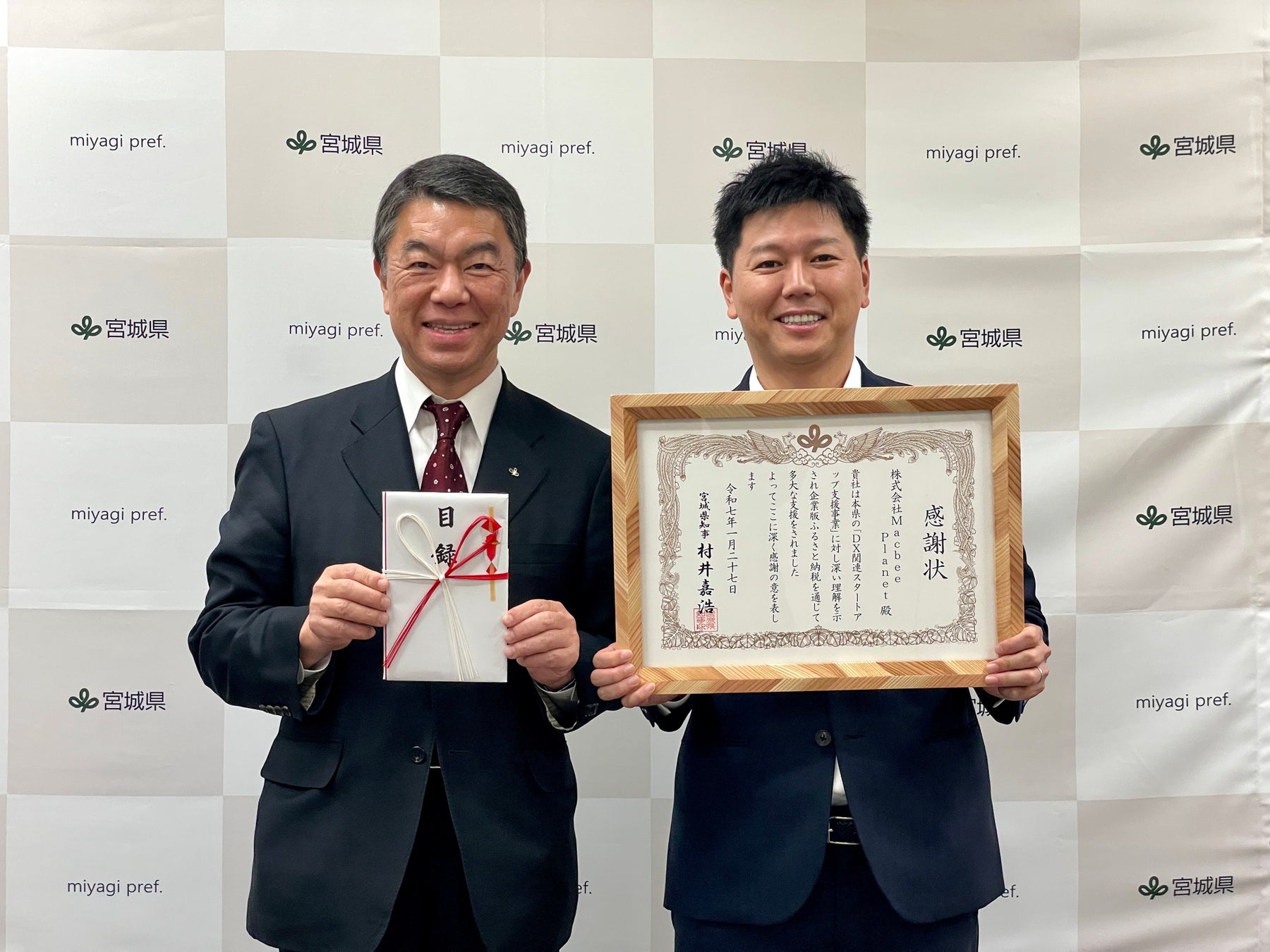 「すべてのマーケティングを成果報酬に」を掲げる株式会社Macbee Planet(本社所在地:東京都渋谷区、代表取締役社⻑:千葉 知裕)は、宮城県に対して「企業版ふるさと納税」を活用して、寄附を行いました。これを受け、2025年1月27日に開催された贈呈式において、宮城県知事・村井 嘉浩氏より感謝状を贈呈されましたことをお知らせいたします。