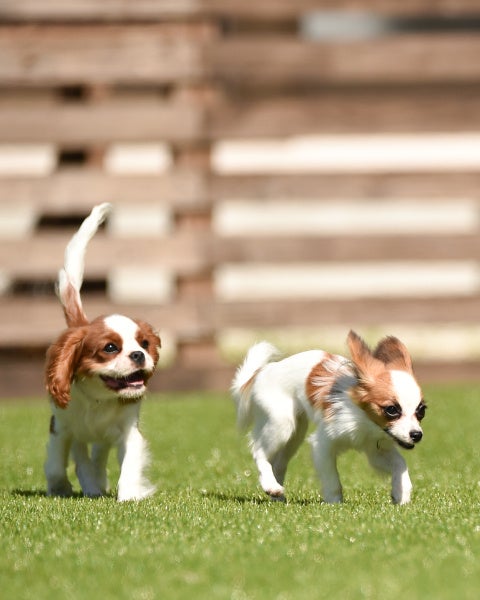 お部屋には「足洗い場やリードフック、専用ケージやアメニティ」などを完備。お部屋のすぐ隣には「プライベートドッグラン」を設けており、ペットと一緒に自然を満喫することができます。JTA認定トリマー準1級資格を持つマネージャーのもと、スタッフ一同お客様が快適にお楽しみいただけるよう心を込めてサポートいたします。