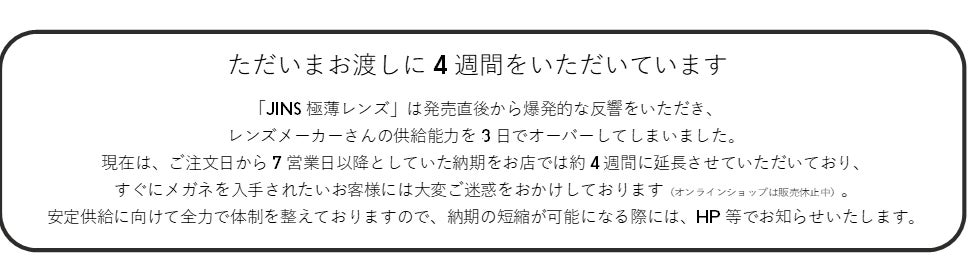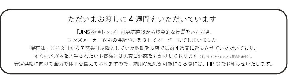 お渡しまで時間がかかってごめんなさい!「JINS極薄レンズ」爆売れ3大要因を徹底解剖!