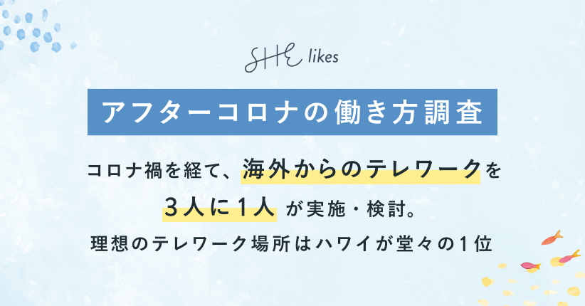SHElikesでは時間や場所にとらわれず、パソコン1台でどこでも働けるスキルの装着をサポートしています。今回の調査では、国内での行動や海外への渡航が制限された長いコロナ禍を経て、多くの人が出社や場所に捉われない新たな働き方を手に入れていることが分かりました。