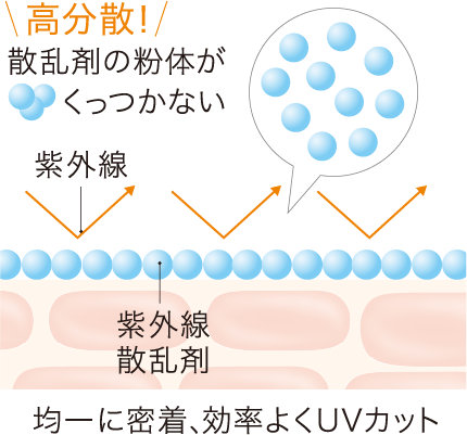 紫外線散乱剤が、肌に均一にフィットし、効率よく紫外線から肌を護ります。