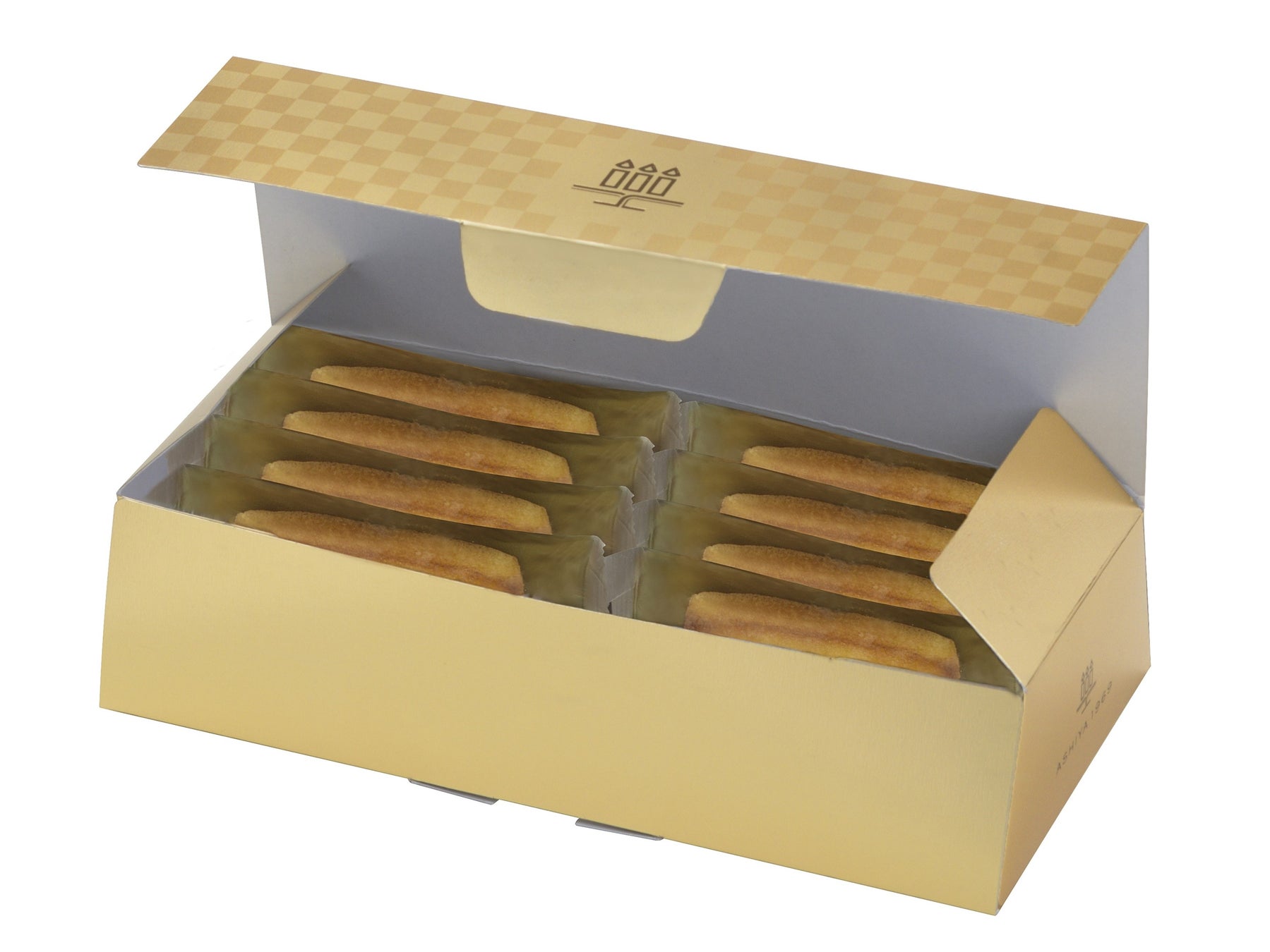 「フィナンシェ」は、フランス語で「金融家」や「お金持ち」という意味を持っており、金塊をイメージした美しい焼き色と長方形が特徴で、パッケージも金塊の形を見立ててデザインをしています。