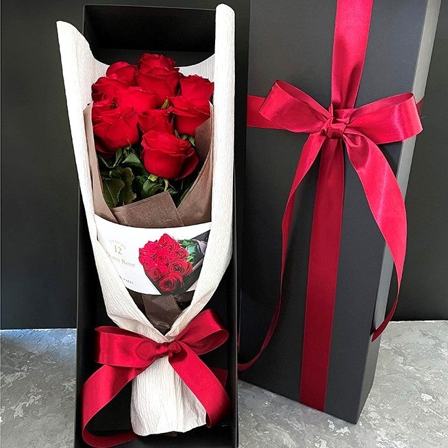 情熱の赤バラを12輪詰め合わせたダズンローズ。