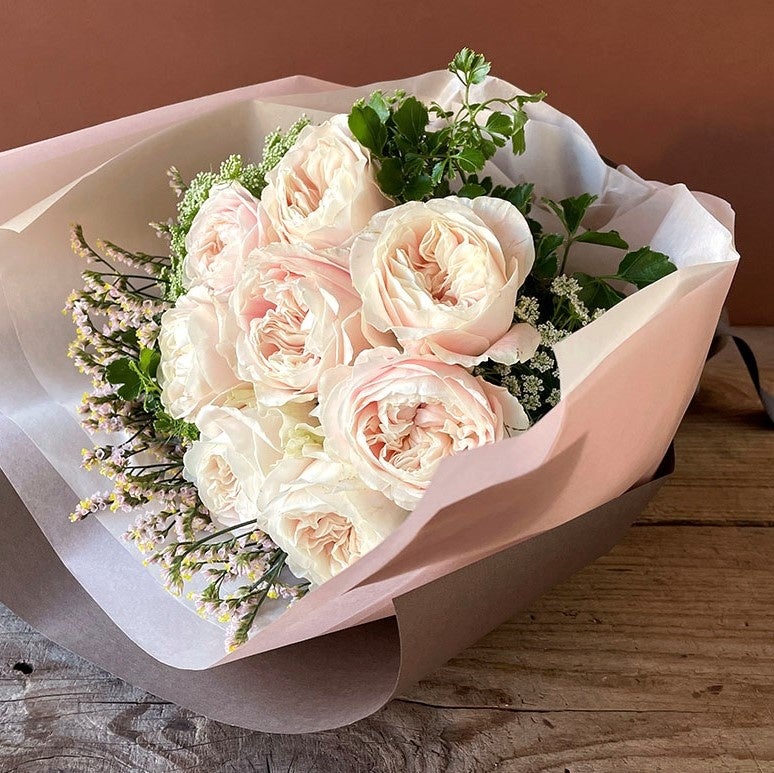 当社が行った調査※の「女性が贈られたい花束」で最も人気だった「淡い色の様々な花が入った花束」。それを具現化したようなブーケです。