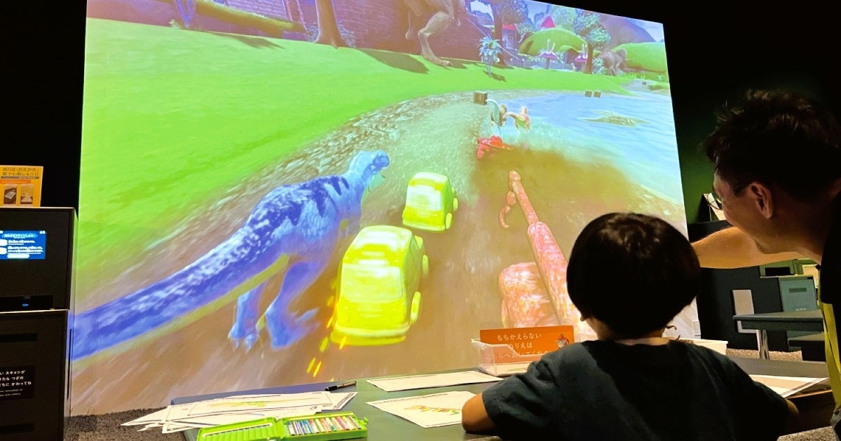 AR(拡張現実)技術を使って砂場で化石を探したり、ティラノサウルスのぬりえが3Dになって白熱のカーレースを繰り広げたりと、今だけの体験をお楽しみいただけます。