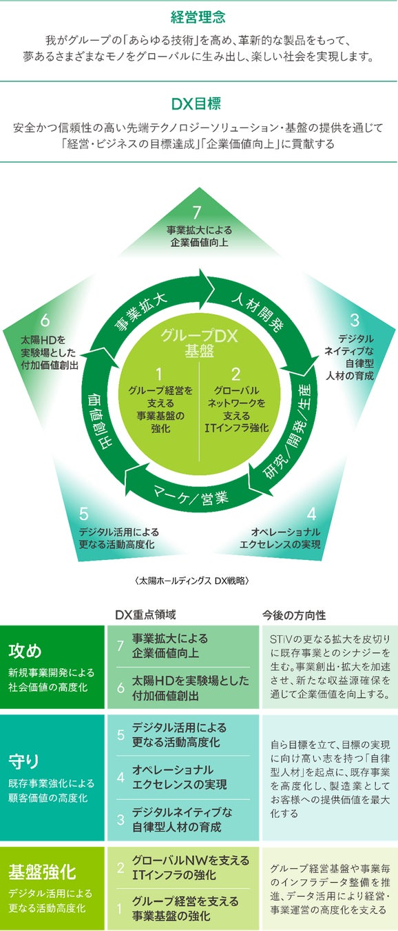太陽ホールディングスは、今後もDXを推進により急速な事業環境の変化に対応し、グローバルな競争力を強化するため、研究開発・生産・営業・マーケティング・新事業開発など、あらゆる業務や仕組みを変革し、新たな価値をお客様に提供してまいります。