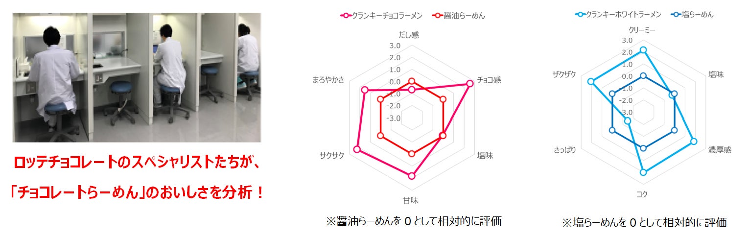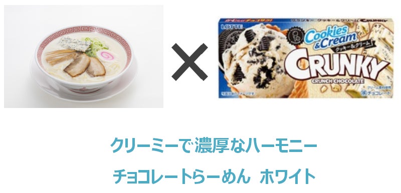 「チョコレートらーめん」は株式会社ロッテ様とのコラボレーションにより、ロングセラーチョコレートを支えるチョコレート研究員がラーメンとチョコレートの相性を分析し、美味しさを追求した“チョコレートらーめん”です。「チョコレートらーめん ブラック」は、中華そばのスープをベースにカカオオイルを加え最後にロッテのクランキーと生姜をトッピングし、コクとアクセントを出しました。「チョコレートらーめん ホワイト」は、塩らーめんのスープをベースにホワイトカカオオイルを加え、クリーミーでコク深い味わいに仕上げました。ロッテのクランキー<クッキー&クリーム>をトッピングした、ほんのりとホワイトチョコの甘さが溶け出したスープが特徴です。甘さのないカカオオイルによる香りと味のギャップや、トッピングのクランキーのサクサク食感、溶けだしたチョコレートの甘さで味の変化も楽しんで頂けます。また、ブラック、ホワイトともにプラス 100 円(税込)で 「追いチョコ」が可能です。スープの甘さを更に増したい方は、ぜひお試しください。