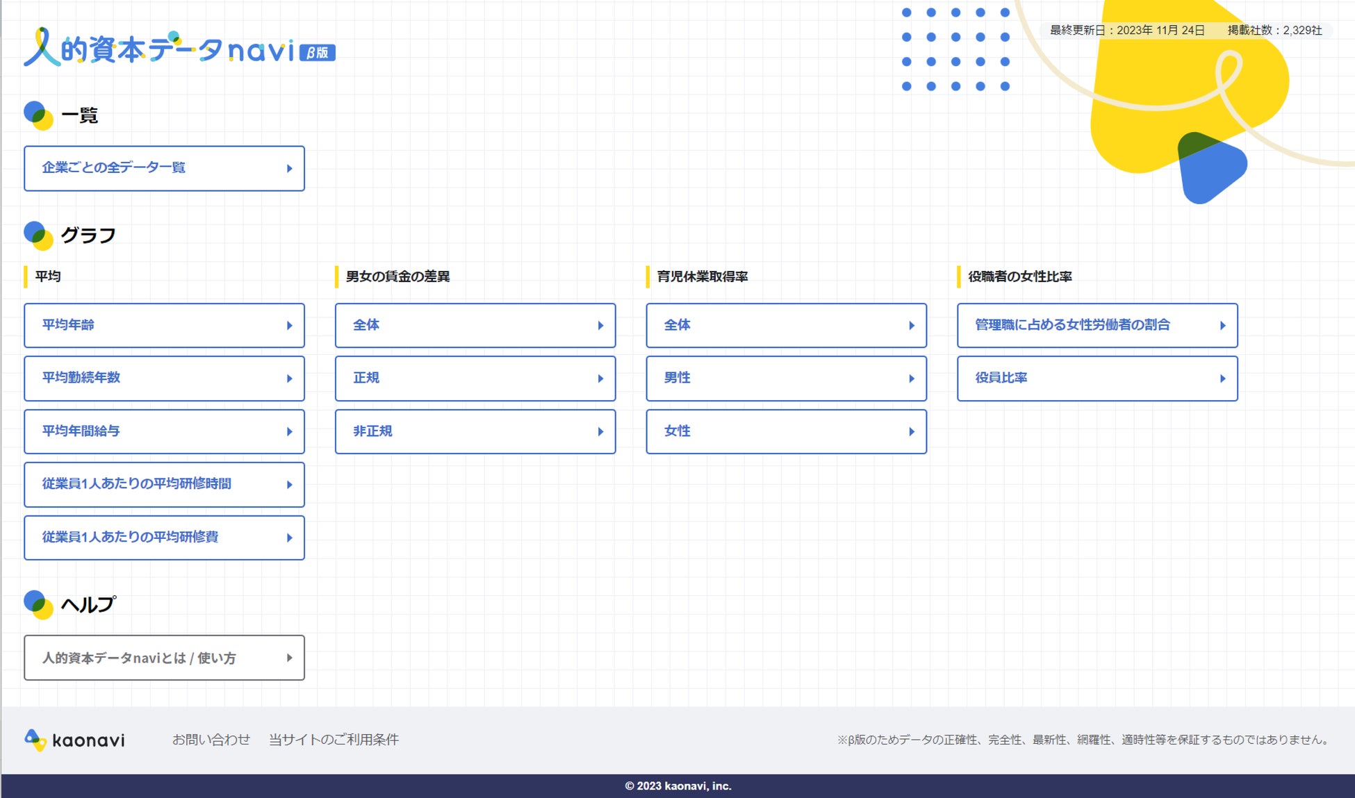 【カオナビ】上場企業2,300社以上の開示情報を一覧化「人的資本データnavi β版」を1月18日より一般公開