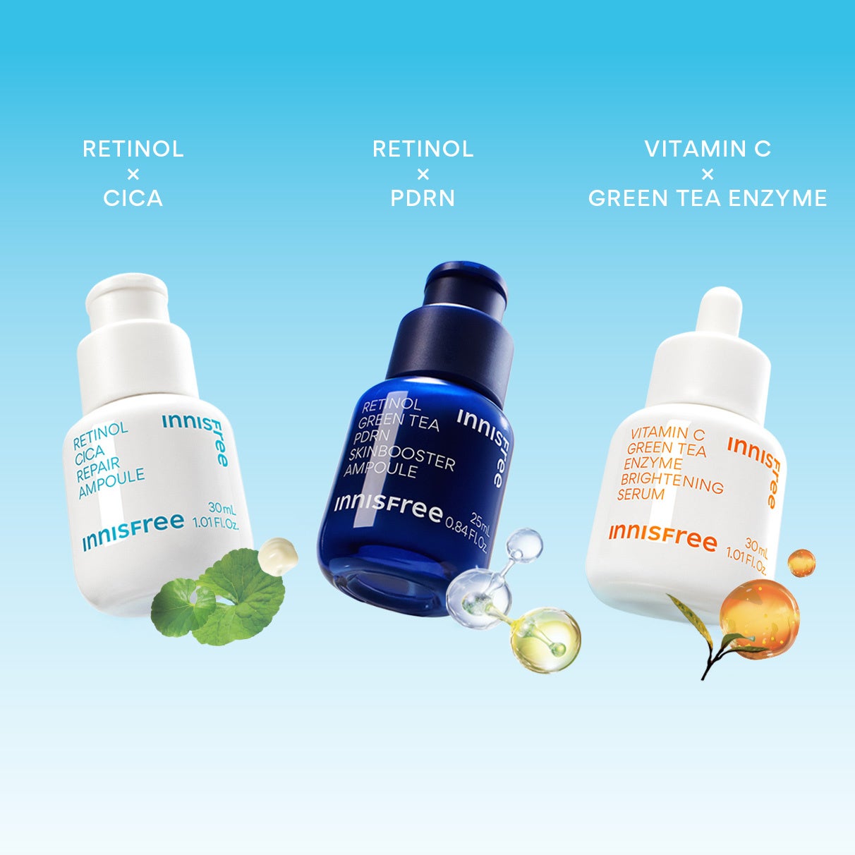 イニスフリーではお客様の肌悩みに向き合う中でいくつかの美容液を提案してきました。なかでも、自然のパワフルさと科学の技術のかけ合わせを主成分とした美容液は現代社会で活躍する世代の肌悩みに応える人気の製品です。