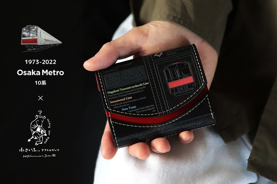 Osaka Metro 400系 運行開始記念モデル/Osaka Metro 10系引退記念モデル/遠州鉄道30形モハ25号引退記念モデルがデザインされた革財布を職人がハンドメイド。