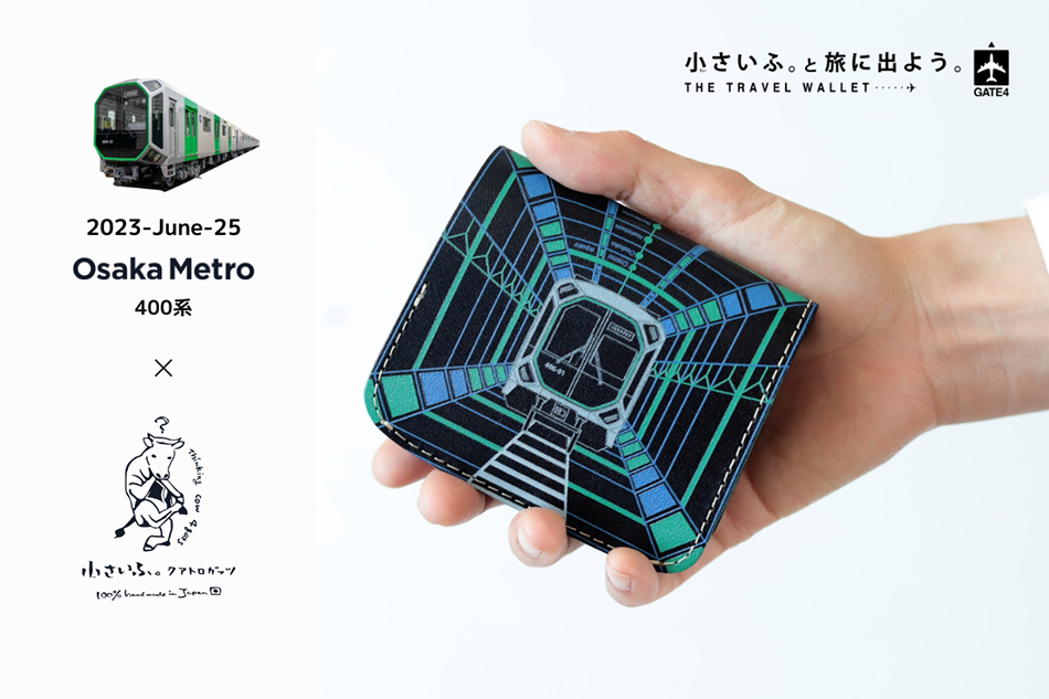 「走り続ける、変わり続ける。」をスローガンに大阪の街を走るOsaka Metro。 大阪・関西万博に向けてアクセスルートとなる中央線に、12年ぶりのOsaka Metroの新型車両400系が2023年に運行がスタート。400系の四隅に配置されたLEDの前照灯と尾灯が特徴的な近未来的なデザインを小さいふで表現しました。