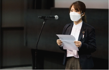 - 代表より式辞「1ページをめくったばかりのアイグッズ。どんな2ページ目を書き込むかは、みなさん次第」