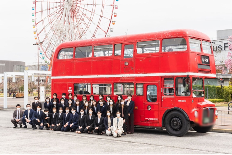 さらに式後は参加者全員でロンドンバスに乗車しお台場の景色を眺めながら東京都渋谷区にあるオフィスに帰社。そのまま2日間に渡る経営方針発表合宿が行われ、代表からの今後の経営方針発表のほか、若手社員を筆頭に10以上のプロジェクト進捗共有がなされました。入社1日目である新入社員も積極的に質問をし、今後の企業方針について活発に意見交換を行いました。