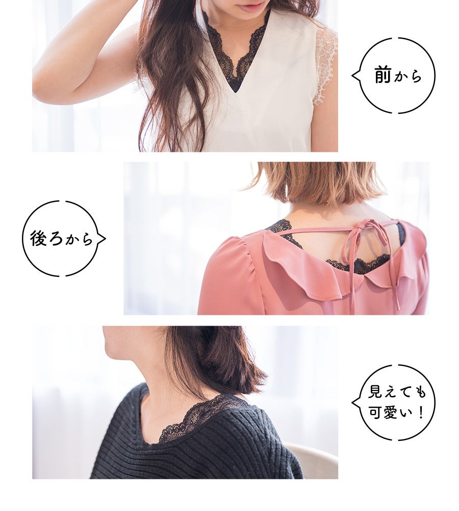 - 上品なレースで、ブラのチラ見えもしっかり防止。
