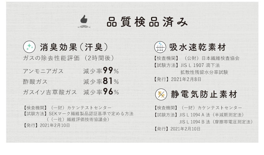 - 品質検品済みの3つの効果で、オールシーズン活躍。