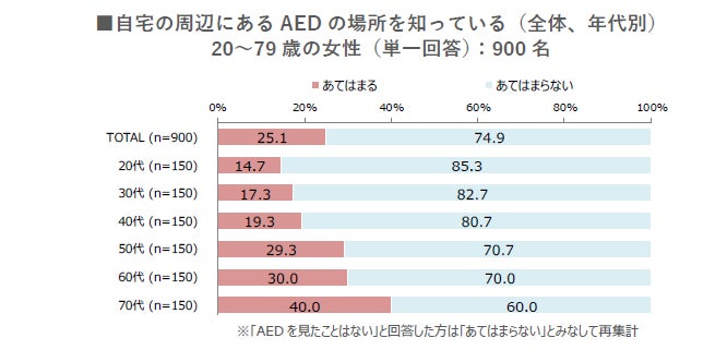 「自宅の周辺にあるAEDの場所を知っている」割合も50代以上で高い。