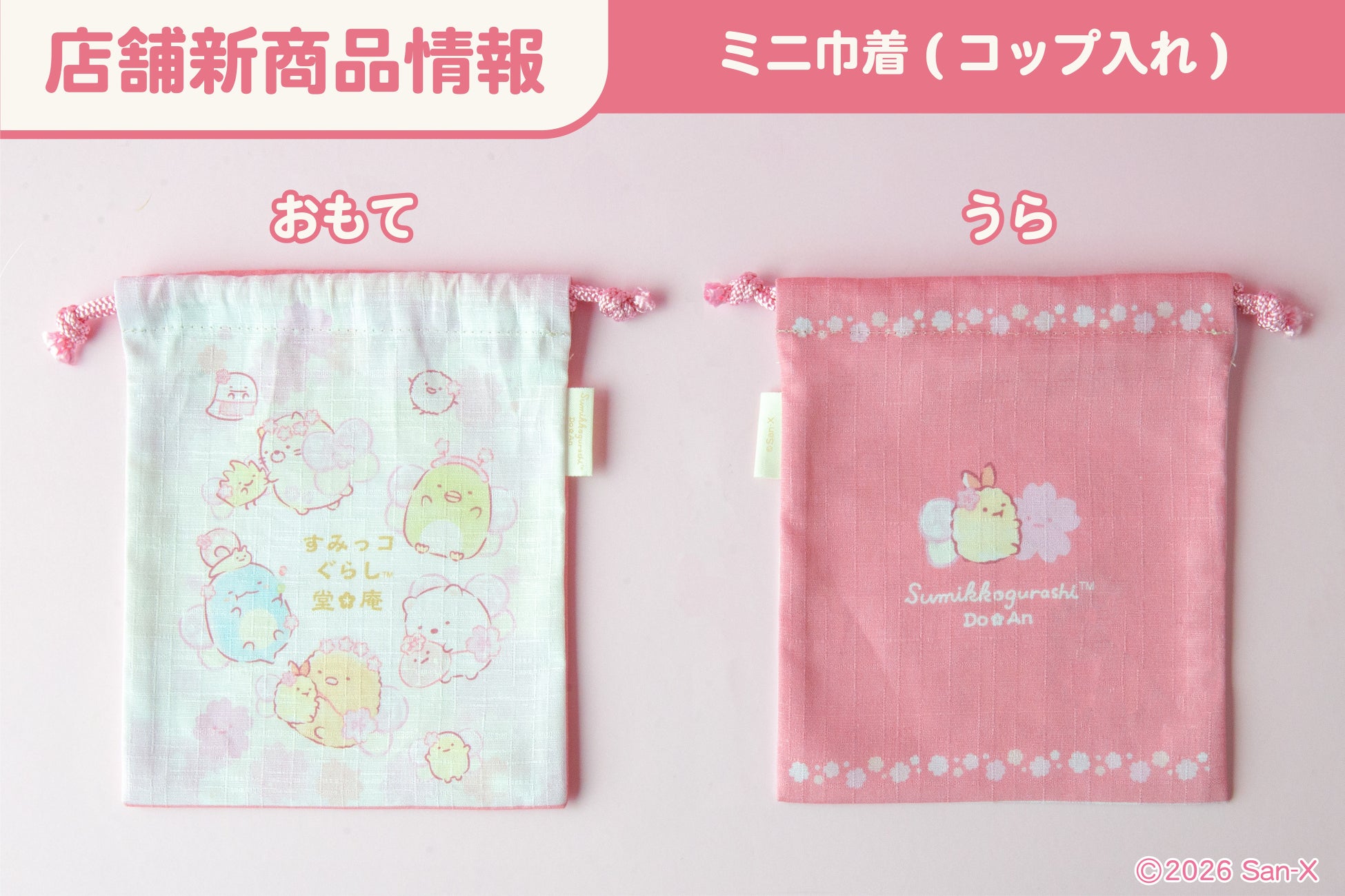 ■【新商品】すみっコぐらし堂&庵共通限定商品「ミニ巾着(コップ入れ)」
