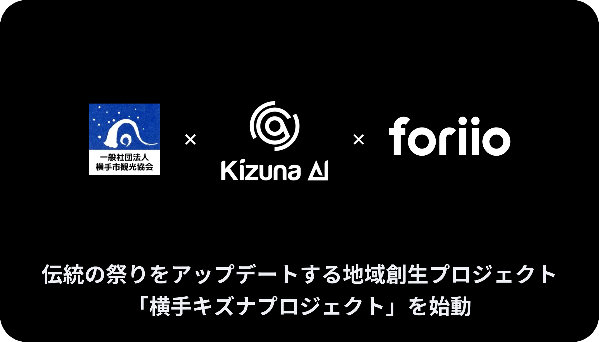 国内最大級のクリエイタープラットフォーム「foriio」を運営する株式会社foriio(本社:東京都新宿区、代表取締役:山田 寛仁)は、一般社団法人横手市観光協会(所在地:秋田県横手市、会長:髙橋 淳)、および世界的に人気を誇るバーチャルビーイング/アーティスト「KizunaAI」を展開するKizuna AI株式会社(所在地:東京都渋谷区、代表取締役:大坂 武史)と連携し、地域の祭りとクリエイターが共に新しい価値を生み出す「横手キズナプロジェクト」を開始することをお知らせいたします。