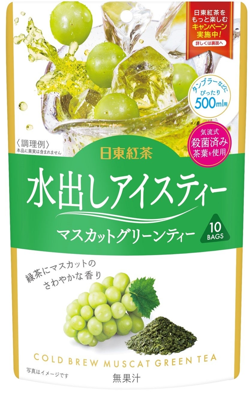 暑い夏にぴったりのすっきりとしたおいしさ!「日東紅茶 水出しアイスティーマスカットグリーンティー10袋入り」新発売