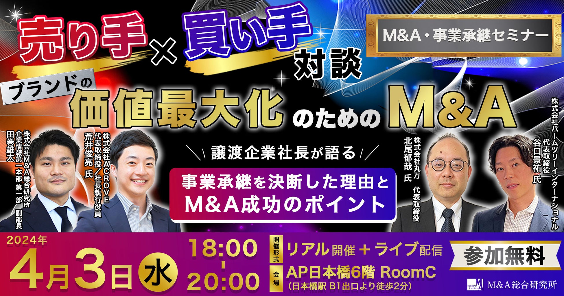 【売り手×買い手対談】M&A・事業承継セミナー ~ブランドの価値最大化のためのM&A~【東京開催】