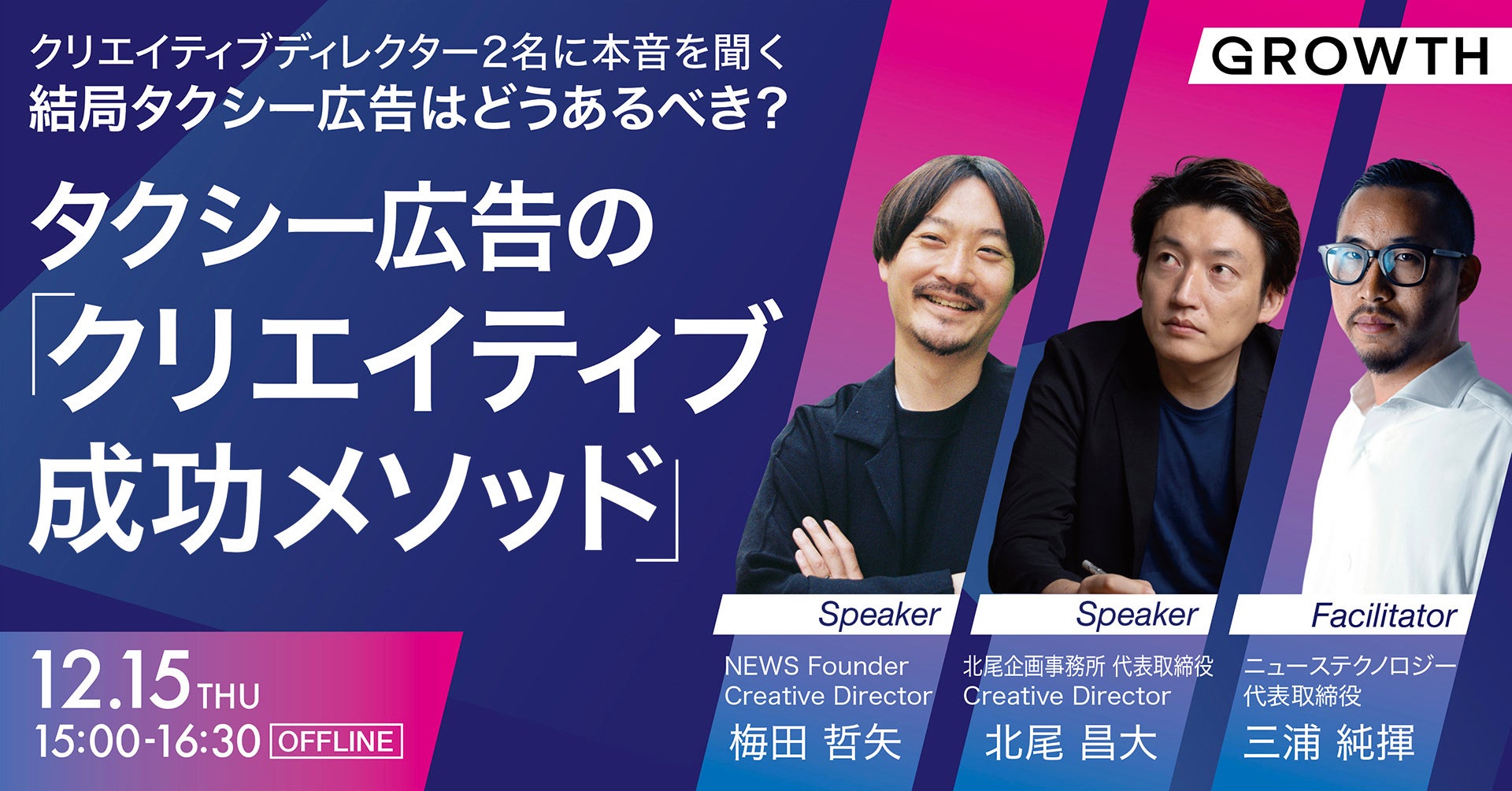 【12/15(木)15:00-16:30 セミナー開催】ビズリーチやecforceなどヒット作を生み出したCD2名に本音を聞く”タクシー広告のクリエイティブ成功メソッド”