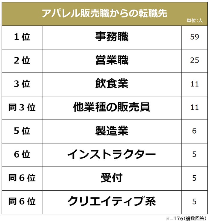 【アパレル販売員から異業種・異職種への転職理由ランキング】経験者176人アンケート調査