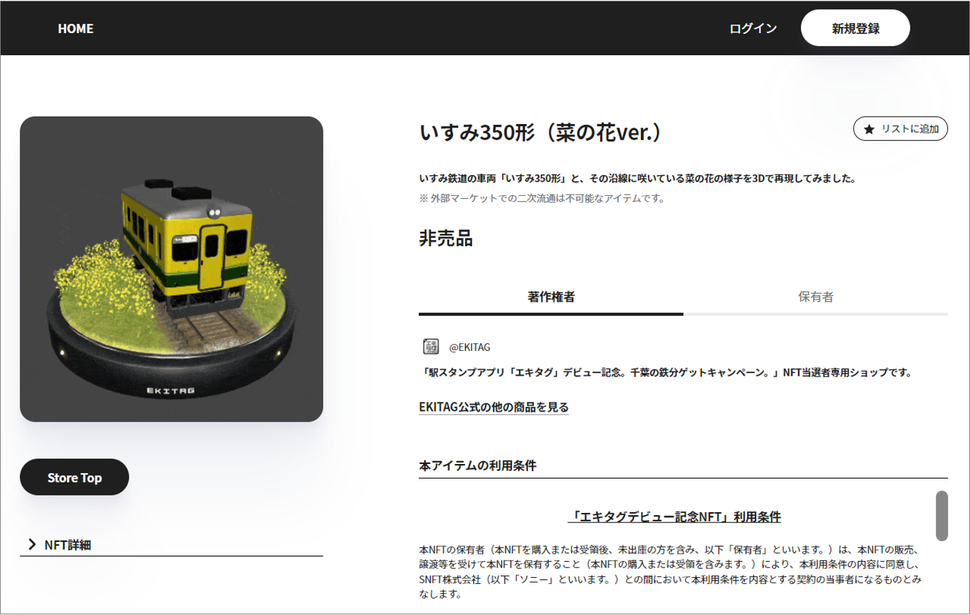 また配信開始より3月31日までの期間限定で、期間限定デジタルスタンプの設定や、スタンプの収集条件を達成したお客さまに抽選で特典をプレゼントするイベントを実施いたします。あわせて、特典提供では実証実験としてオリジナル鉄道関連グッズのNFTコンテンツもラインナップいたします。今後は、順次対象路線を拡大するとともに、鉄道をご利用頂くお客さまだけではなく、様々な観光施設や観光スポットなどを訪れるお客さまを対象にした、デジタルスタンプラリー企画等にも『エキタグ』を提供していく予定です。
