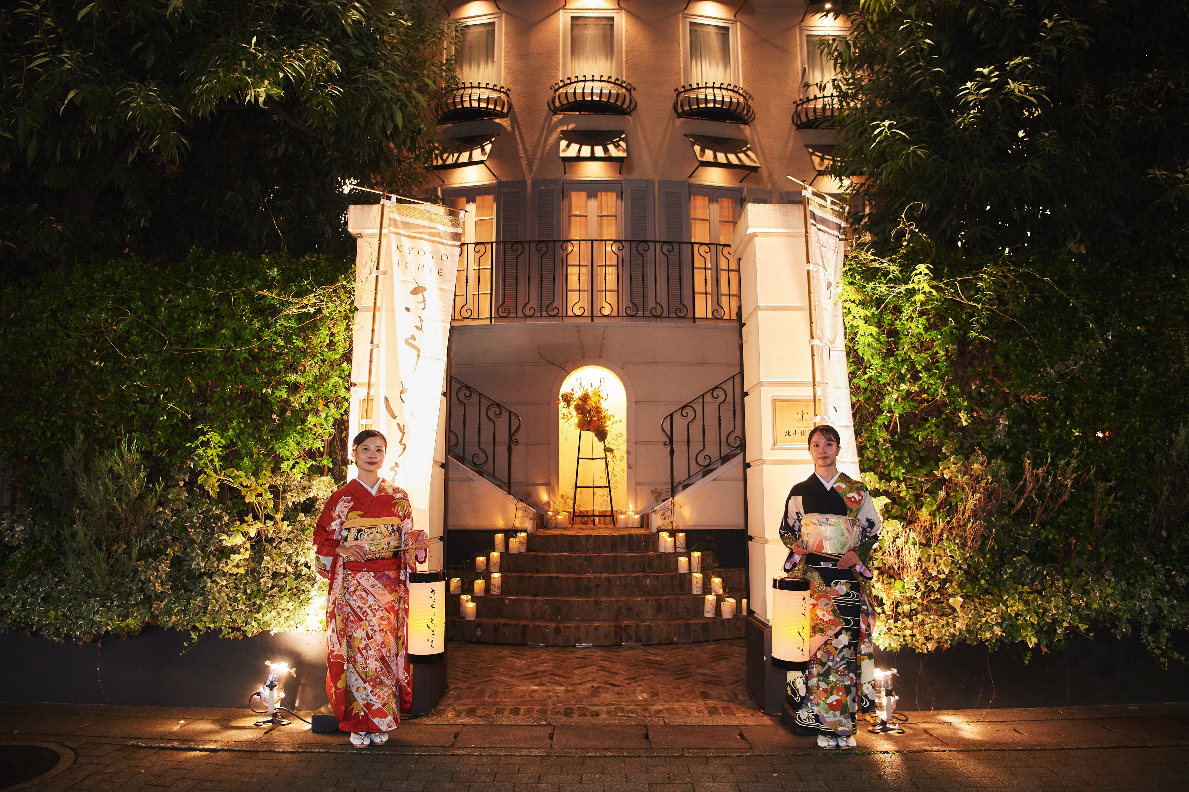 第一部をお楽しみいただいた後は、TAKAMI BRIDALのウエディング施設が立ち並ぶthe place of northに位置する「 Guest House 北山倶楽部 」「 THE TRINITY HOUSE 」「 RESTAURANT VITRA 」「レストランひらまつ 高台寺 」「 高台寺 十牛庵 」にて京都ならではのディナーをお愉しみいただきました。