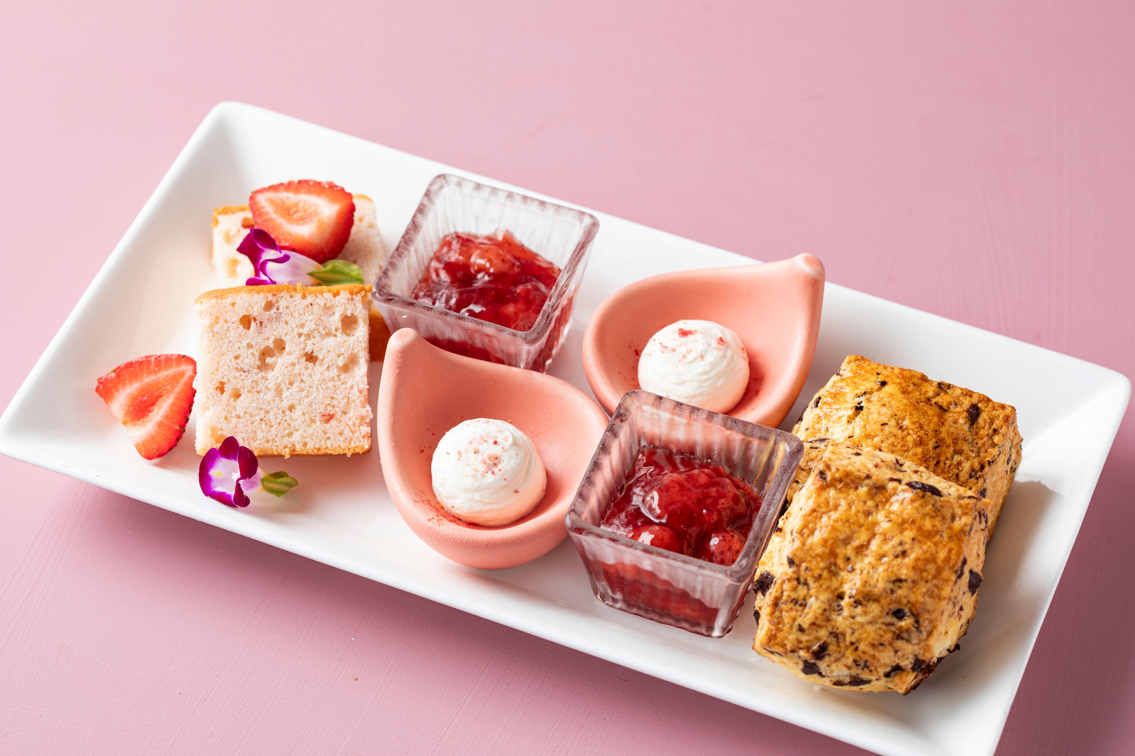 ストロベリーカラーで春を先取り!苺とルバーブのタルトや苺のパウンドケーキなど甘酸っぱい香りに包まれる至福の“苺づくし” ラウンジ サウスコート「ストロベリーアフタヌーンティー」