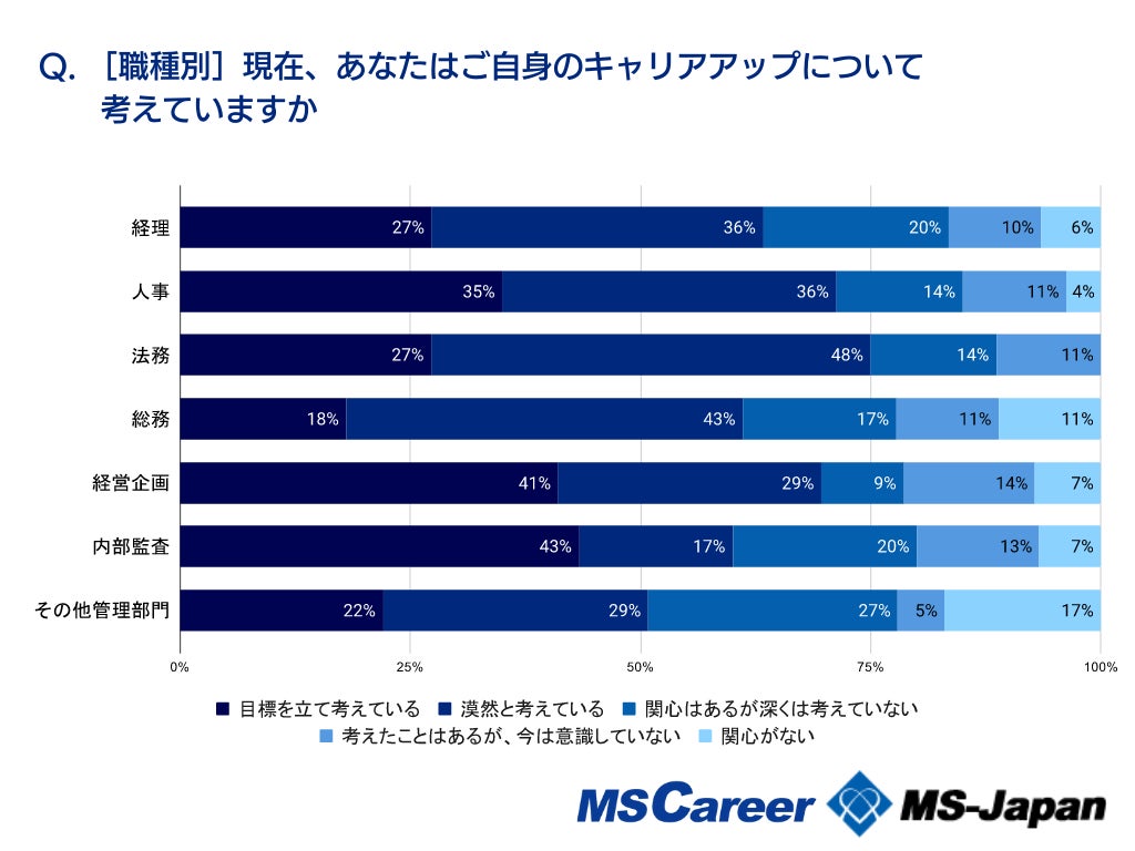 管理部門の「約6割」が、キャリアアップについて「目標を立て考えている」「漠然と考えている」と回答