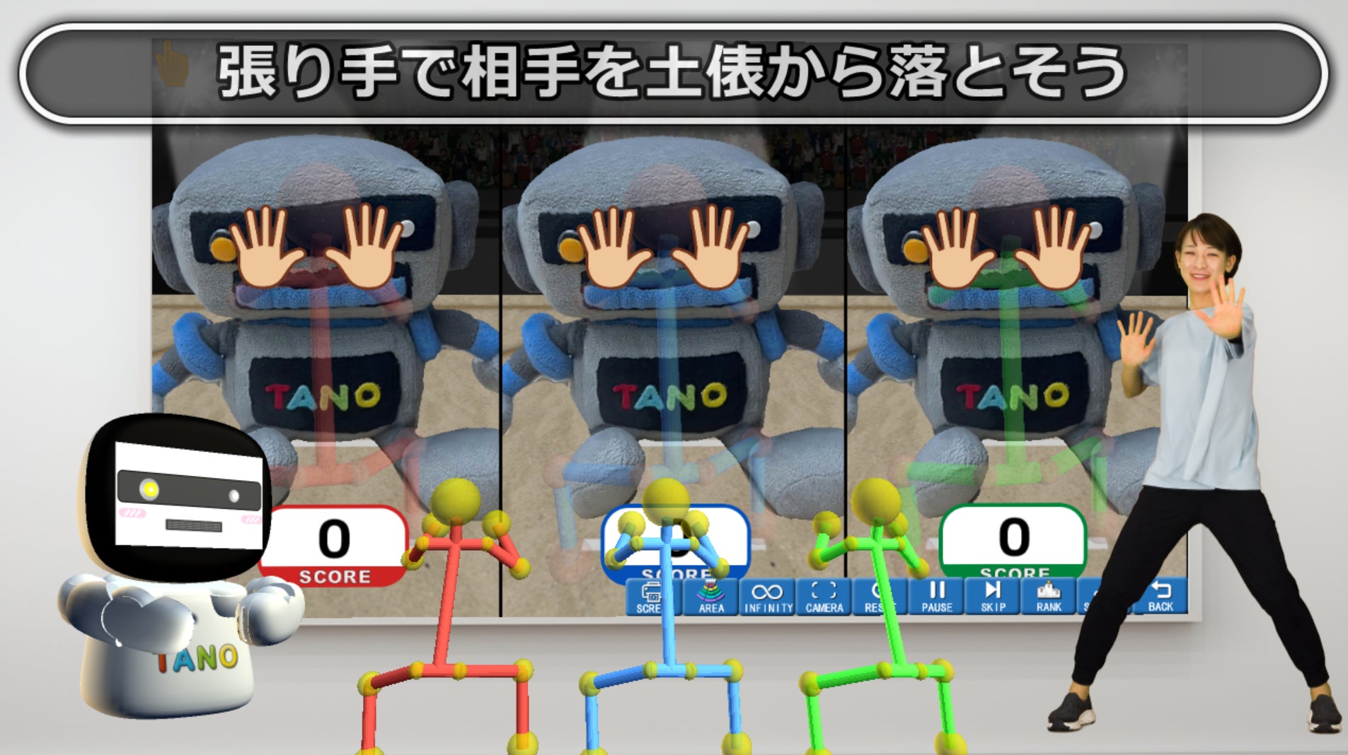 TANOは、非接触・非装着型のセンサーとゲーミフィケーション技術を組み合わせた次世代の福祉トレーニング機器です。