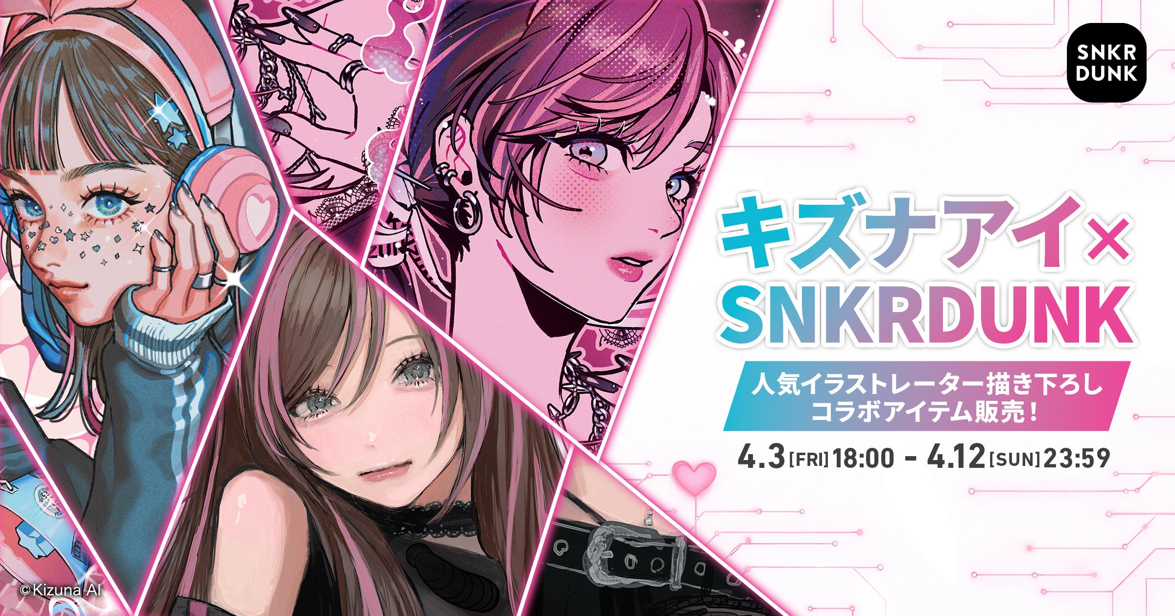 バーチャルタレント「Kizuna AI(キズナアイ)」とスニダンがコラボレーション!描き下ろしイラストを使用した限定アイテムを4月3日より販売