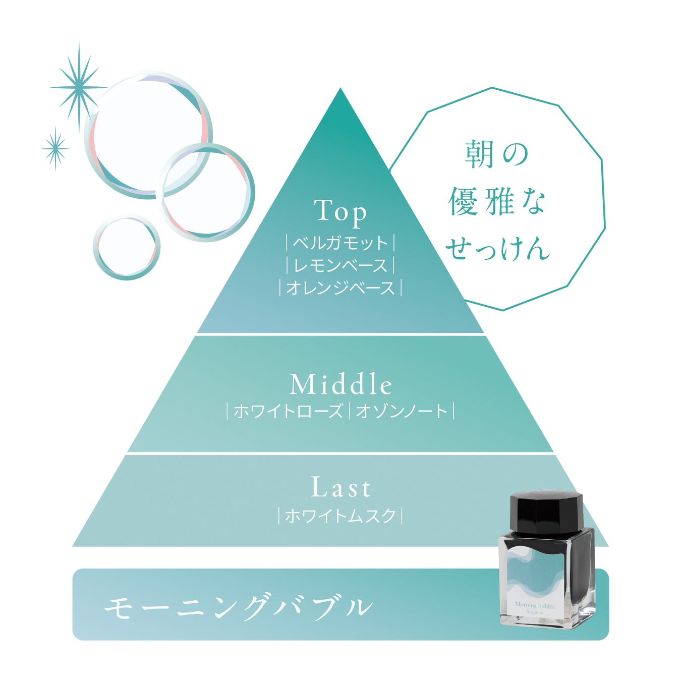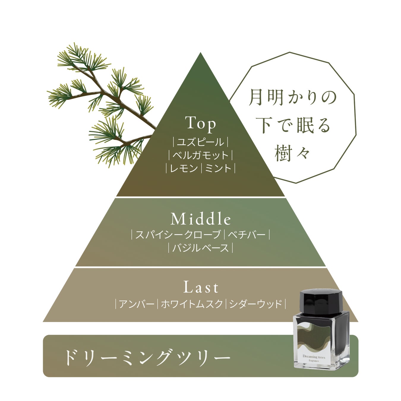 「つけペン用ボトルインクDipton」第5弾は、蓋を開けると香りが広がるフレグランスインクが登場。ボトルやペン先から香りが漂い、視覚(インク色)でも嗅覚(香り)でも楽しめるfragrance ink が、書く⼈の日常を豊かに彩ります。